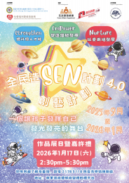 全民造『SEN』4.0創藝計劃將於2026年1月17日假將軍澳新都城三期中庭 (暫定)舉行公眾作品展及嘉許禮。此計劃全由SEN兒童作主導,一步步籌劃屬於他們的作品展,從主題設計、作品製作、作品展示,也由他們全程參與,發揮所長!期望得到各界支持及參與,讓社會了解SEN兒童同樣擁有優勢與強項,並且能夠為社會作出貢獻。