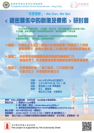 不少年輕情侶因意外懷孕,人生驟變,成為父母,卻因不懂處理與伴侶及其親人同住、子女照顧、管教及經濟壓力等等問題而起的衝突,導致關係破裂,分手收場。本研討會旨在協助社工、輔導員及青年工作者探討親密關係中的衝突與危機,並透過學習饒恕修補破裂的關係。