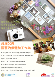 现今祖父母除了忙于工作、打理家庭、部份更需协助儿女照顾孙儿生活起居,担当教养角色。面对生活种种压力,身兼多职,往往忽略自己的身心需要。因此,本机构于2019年9月27日起举办园艺治疗工作坊,希望让长者从体验植物的生命力,调整教养的心态,舒缓生活压力,达至身心灵健康。