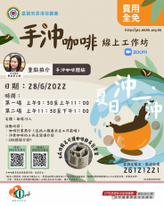 沖泡一杯手沖咖啡需要十分專注,除了要控制水溫,亦要靠手腕轉動控制水柱速度和咖啡粉的粗細,從而決定咖啡萃取的味道。天恩培訓及發展中心於2022年6月28日舉辦兩場「手沖咖啡線上工作坊」,讓大家足不出戶亦能體驗手沖咖啡,認識沖煮咖啡工具和設備?及咖啡相關知識。