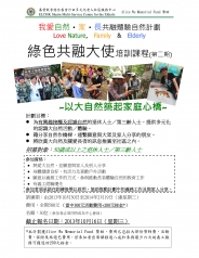 透過一連串豐富而全面的訓練,培訓成為綠色共融大使。藉分享大自然作橋樑,以義務工作的形式,將欣賞自然及關愛長者的訊息推廣至社區之內。